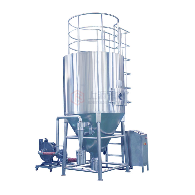 設備主要由:送料系統(tǒng)、加熱系統(tǒng)、干風裝置、霧化系統(tǒng)、噴霧干燥系統(tǒng)、產(chǎn)品回收系統(tǒng)組成。