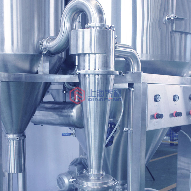 本款噴霧干燥機由八個系統組成,即供料系統、霧化系統、干燥塔、物料回收系統、 尾氣處理系統、加熱系統、管道系統和控制系統。